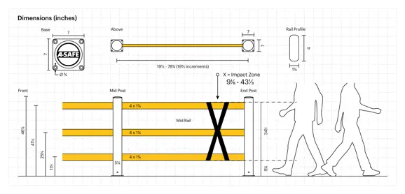 eFlex Pedestrian 3 Guardrail is ideal for defining the flow of pedestrian traffic and physically separating people from hazards and equipping build base specifications.